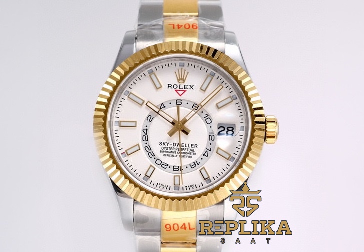 Rolex Sky Dweller 336238 Beyaz Kadran 904L Gold Oysterflex 9002 Super Clone ETA